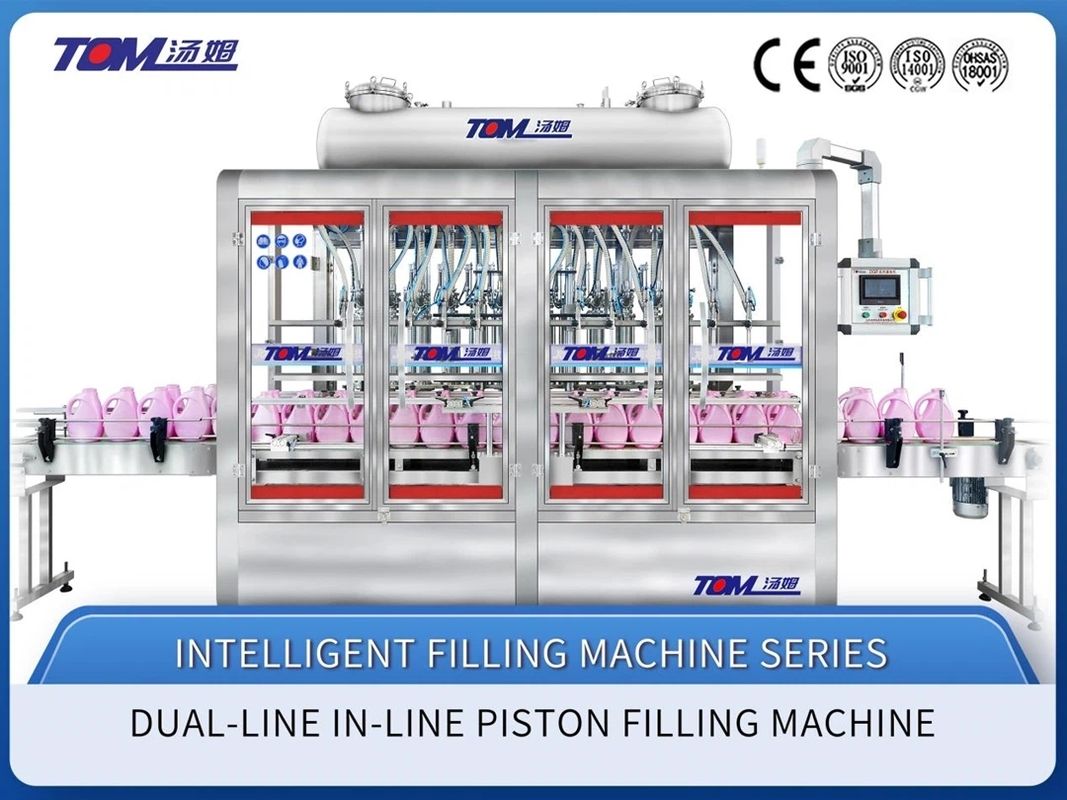A Linha Automática de Enchimento de Líquido para Lavanderia 1-5L é uma solução de embalagem de alta eficiência projetada especificamente para a indústria de produtos químicos de uso diário. É ideal para o enchimento de líquido para lavanderia, amaciantes, detergentes e outros líquidos viscosos. O sistema é equipado com um sistema de controle PLC inteligente que integra alimentação automática de garrafas, enchimento, tampagem, rotulagem e entrega do produto acabado, alcançando produção totalmente automatizada com alta eficiência e precisão de enchimento.